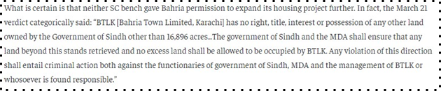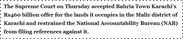 The Supreme court accepted a notion by Bahria Town to acquire 16,896 acres of land near Super Highway by paying over Rs460 Billion. The Supreme has found the MDA Malir Development authority to have illegally allotted land to Bahria Town Karachi. The Malir Development Authority claimed those lands from Sindh Government itself. Court did mark a notion that Bahria Town can not be a Real Estate Agency but only a developer.